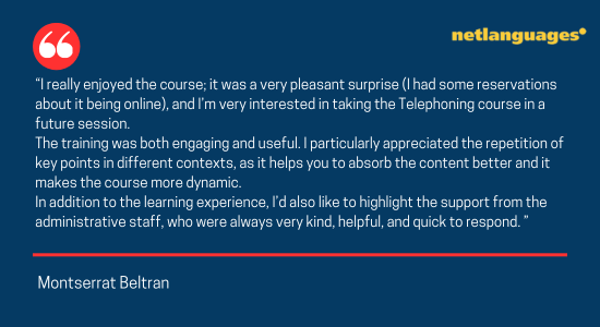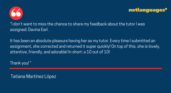 All students on our tutored courses are assigned their own personal Net Languages tutor who will help and correct them throughout the course. Students can ask their tutors questions about the course, practise their pronunciation, organise speaking tutorials with their tutor in real time and receive corrections and comments on their writing tutorials.